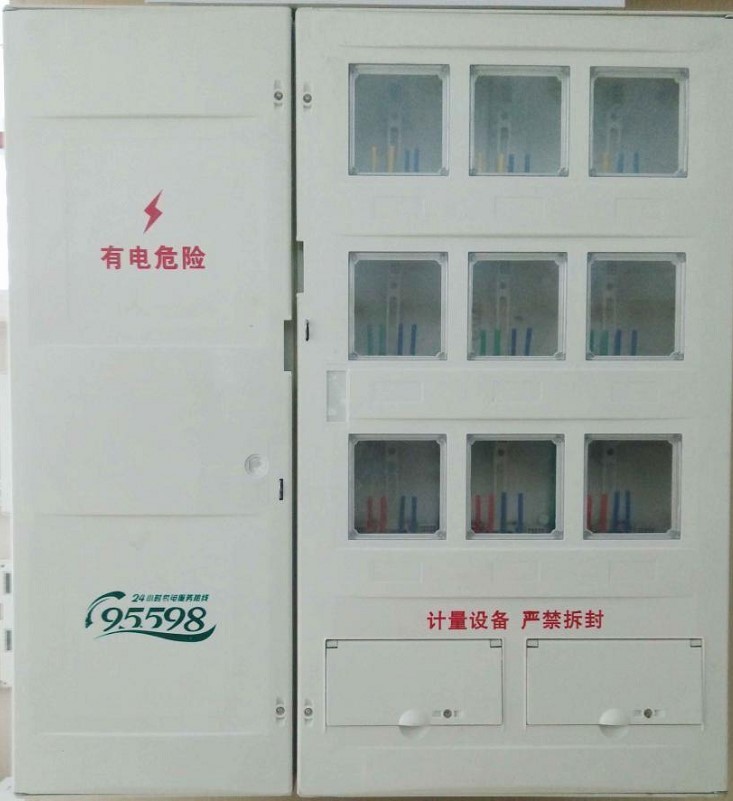 計(jì)量箱: 計(jì)量箱是為了計(jì)量電能所必須的計(jì)量器具和輔助設(shè)備的總體,包括電能表、計(jì)量用電壓、電流互感器及其二次回路、電能計(jì)量屏、柜、箱等。計(jì)量箱可采用懸掛式或落地式安裝。為保證安裝質(zhì)量,懸掛式箱體固定必須蠶蛹內(nèi)置膨脹螺栓,螺栓尺寸滿足安全牢固的要求及戶外安裝條件。